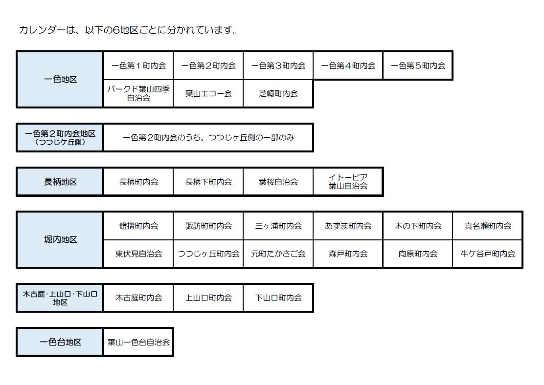 収集日カラーカレンダー / Collection procedures and area calendar|葉山町