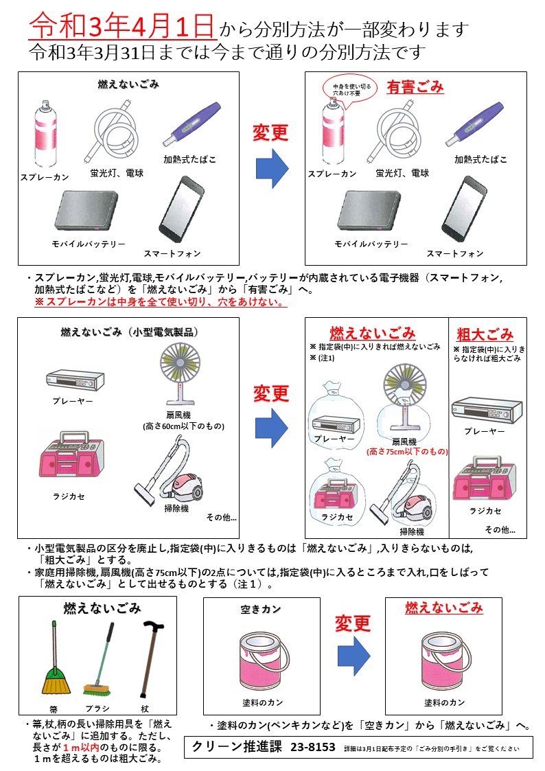 令和3年4月1日からごみの分別方法が一部変わります/佐野市